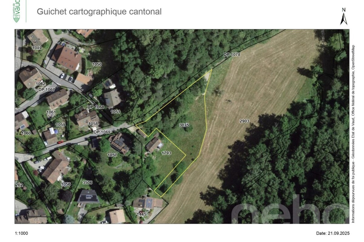Located in a sought-after and green residential area of Le Mont-sur-Lausanne, this property includes two distinct plots: a 1,200 m² building plot in a villa zone with an existing structure, and an adjoining 2,250 m² plot in a green and public-use zone. The setting is quiet, well-exposed and just minutes from Lausanne city centre.
