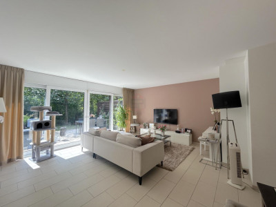 Un magnifique appartement lumineux et spacieux Un cadre verdoyant, résidentiel et accueillant entouré de jardins et d’arbres à cinq minutes du centre de Genève. L'ascenseur vous mène à l'entrée de l'appartement. En ouvrant la porte, vous trouverez le hall d'entrée qui donne sur votre gauche sur un magnifique séjour avec cuisine ouverte et un grand balcon: Un agréable balcon couvert...