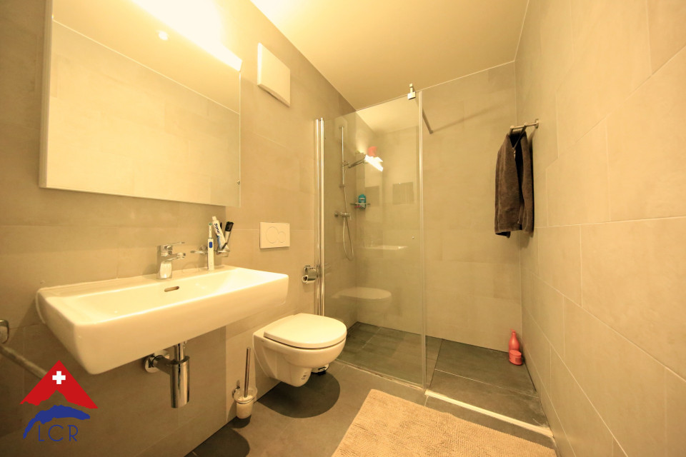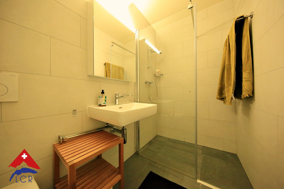 - Au rez inférieur: Il est composé de 2 chambres dont une avec un jardin privé, de 2 salles de bain: 1 avec douche & WC et 1 avec baignoire & WC.