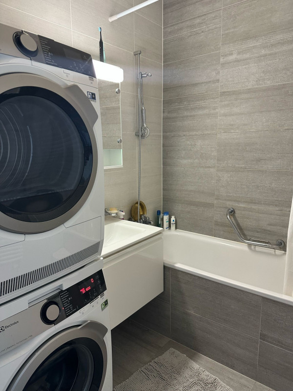 L’espace de vie comprend une salle de bain spacieuse avec branchement pour colonne de lavage, une douche italienne confortable, ainsi que 2 WC séparés, pour plus de praticité au quotidien.
