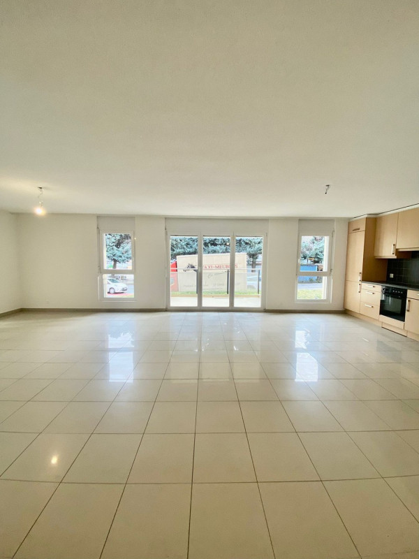 Spacieux et moderne logement d’environ 110 m2 au rez-de-chaussée, il se situe à proximité de toutes commodités et des axes autoroutiers.