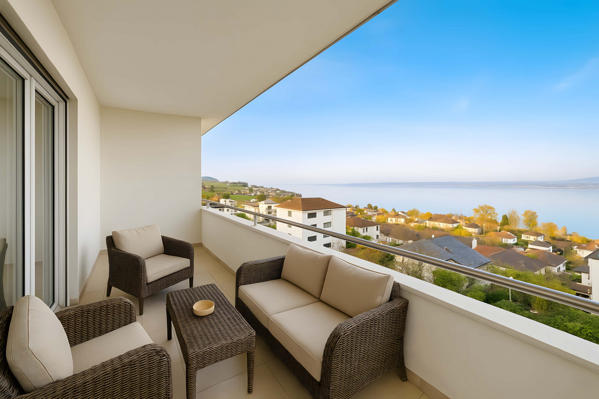Les balcons orientés lac permettent de profiter pleinement du panorama,