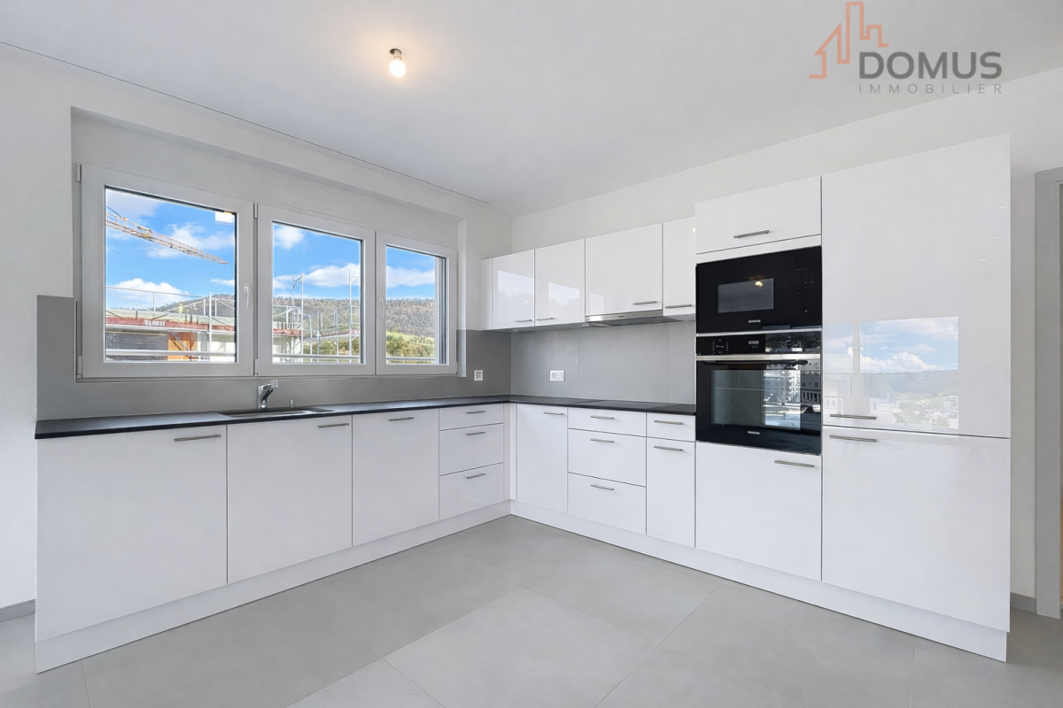 Coup de Cœur à Perrefitte : Modernité et Sérénité aux Portes de Moutier L’alliance parfaite entre confort contemporain et calme absolu. Situé au 2ème étage d'une résidence paisible, cet appartement de 4,5 pièces (90 m²) a bénéficié d'une rénovation complète en 2025. Baigné de lumière et pensé pour un style de vie moderne, il saura séduire les familles, comme les adeptes...