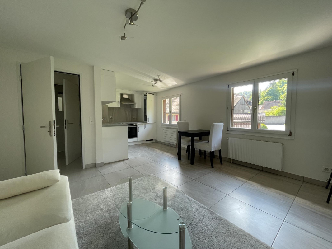 En plein centre du village, sur la route de Bâle, à 3 kilomètres de Delémont et à 39 kilomètres de Bâle, immeuble de style anglo-normand avec parking 5 places couvertes et jardin de 300m2. Arrêt de bus et gare à 2 minutes à pied.