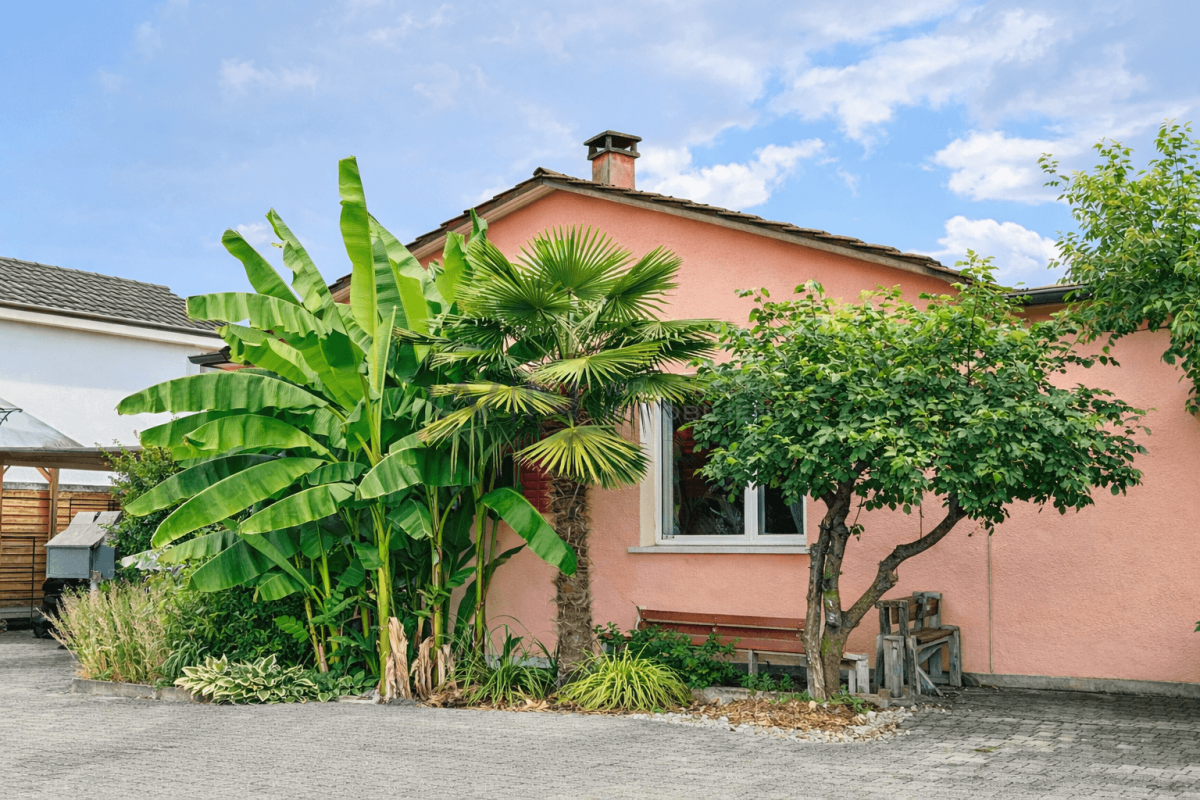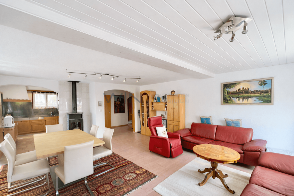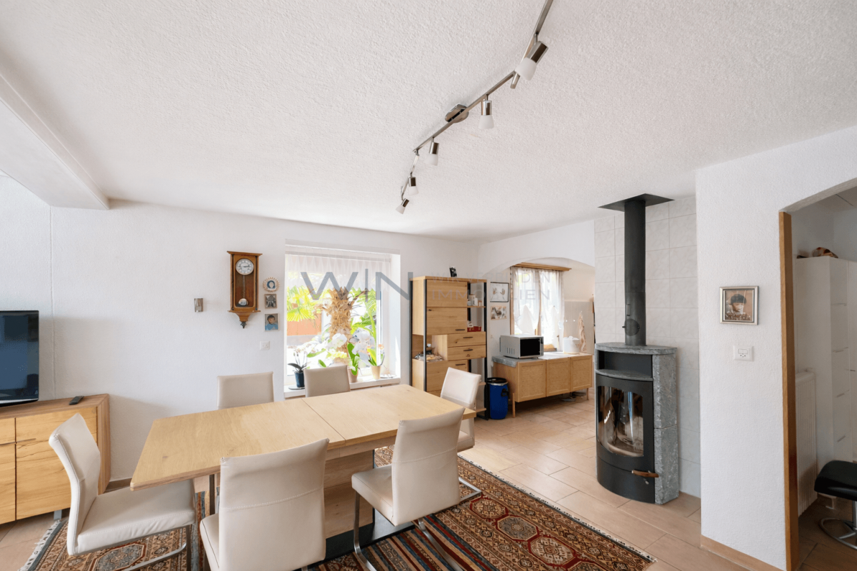 Dieses freistehende Einfamilienhaus vereint Substanz, Privatsphäre und vielseitiges Potenzial. In sonniger Lage eingebettet, bietet es Raum für Ideen und ein Zuhause mit echtem Wohngefühl. Der offene Wohn- und Essbereich mit Cheminéeofen bildet das Herzstück des Hauses. Die angrenzende Küche überzeugt mit solider Ausführung, viel Stauraum und zeitlosem Charakter. Zwei wohnlich ausgebaute Räume im Untergeschoss eröffnen flexible Nutzungsmöglichkeiten. Der Aussenbereich ergänzt das Haus mit einem gepflegten Garten, grosszügigem Gartenhaus, Brunnen und eingewachsenem Grün. Ein Ort zum Verweilen und Gestalten.