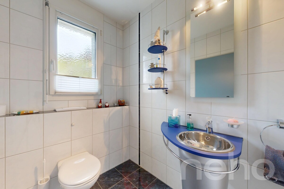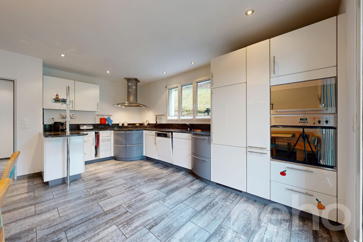 Dieses aussergewöhnliche Fünfzimmerhaus aus dem Jahr 1999 präsentiert sich als stilvolle Verbindung aus Grosszügigkeit, Licht und Wohnkomfort. Auf 260 Quadratmetern Nettowohnfläche, verteilt über drei Etagen, entfaltet sich ein durchdachtes Raumkonzept mit klarer Struktur und hochwertiger Anmutung. Bereits das grosszügige Entrée vermittelt ein Gefühl von Weite und Eleganz. Im Erdgeschoss befinden sich ein geschmackvolles Gästebad sowie eine helle Waschküche mit Fenster. Das repräsentative Wohn- und Esszimmer bildet das Herzstück des Hauses und beeindruckt durch ein heimeliges Cheminée, einen Erker, sowie eine grossflächige Verglasung, welche den Innenraum mit Tageslicht durchflutet und den Blick in die Umgebung freigibt. Die leichte Hanglage eröffnet eine attraktive Weitsicht. Im Obergeschoss liegt der private Rückzugsbereich mit Schlafzimmer, direktem Zugang zum begehbaren Kleiderschrank und angeschlossenem Badezimmer mit Badewanne, Dusche und Balkon. Dachschrägen und Dachfenster unterstreichen das behagliche Ambiente. Das Untergeschoss beherbergt eine exklusive Wellnessoase mit integrierter Sauna und Dampfbad. Das 1543 Quadratmeter umfassende Grundstück besteht aus zwei Parzellen und bietet einen gepflegten Aussenbereich mit Swimmingpool, Aussendusche, Gemüsebeet sowie einer separat nutzbaren Fläche inklusive bestehendem Stall. Vier Aussenparkplätze sowie eine grosszügige Doppelgarage mit elektrischem Tor und praktischem Zwischenboden vervollständigen dieses hochwertige Angebot.Haben wir Ihr Interesse geweckt? Nehmen Sie mit uns Kontakt auf - wir freuen uns, von Ihnen zu hören.