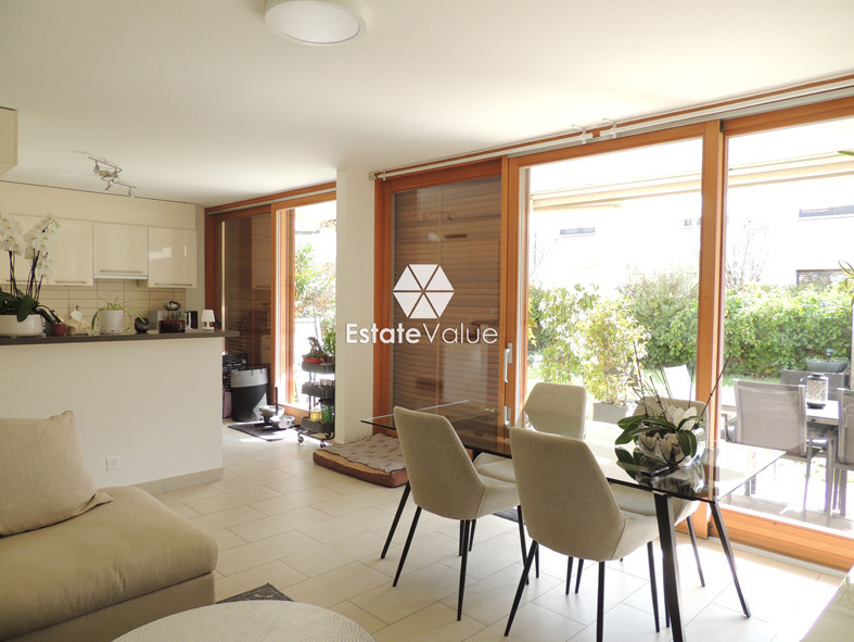 Exclusively for sale : 4 rooms ground-floor apartment in a modern building at Gy village, close to amenities and 30 min. from Geneva city center.