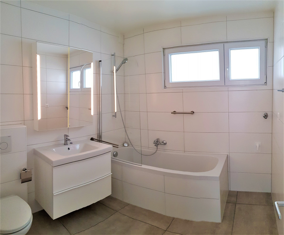 A louer un charmant 3.5 pièces entièrement rénové au 2e étage d'un immeuble résidentiel de 4 étages. Excellente situation, très ensoleillé et vue dégagée. Place de jeux privatifs derrière l’immeuble en retrait de la route.
