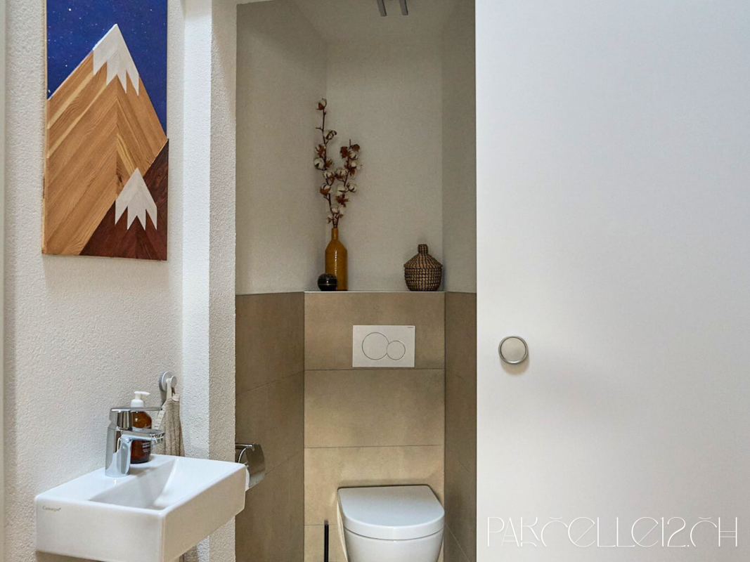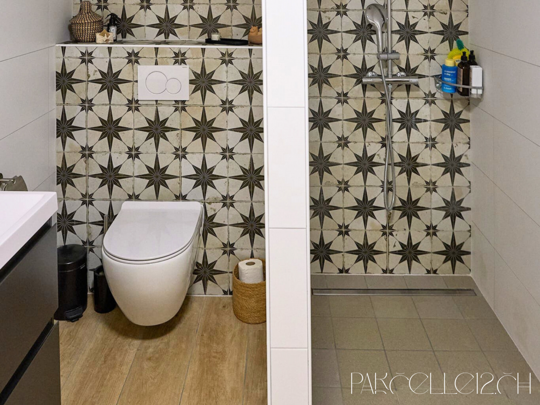 Appartement agencé avec des matériaux sobres, de qualité et entrée indépendante - deux places de parc extérieures.