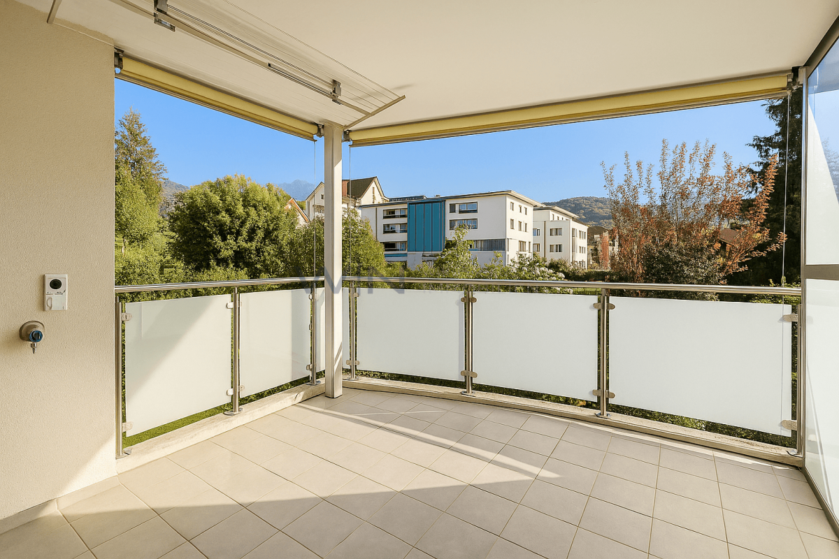 Auf dem Balkon lässt sich die Abendsonne in vollen Zügen geniessen. Hier spüren Sie Ruhe und Weite, und doch sind Sie mitten im Leben, zentral gelegen und bestens angebunden.