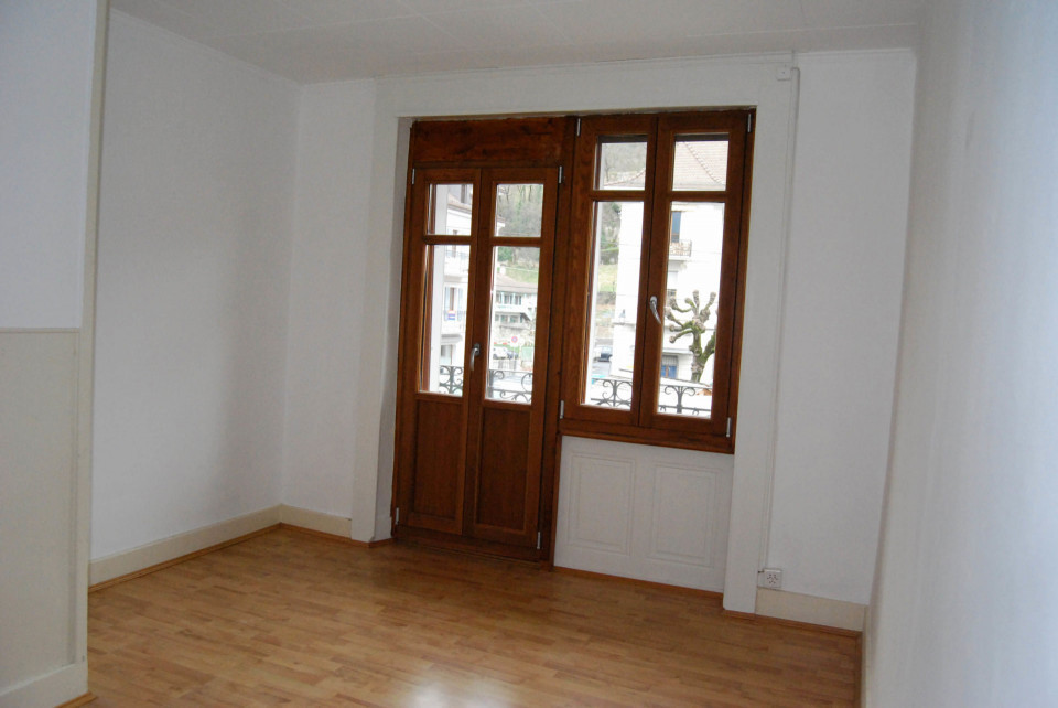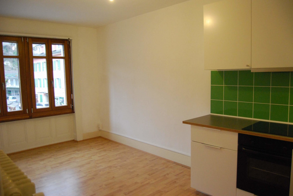 Appartement au centre de Bex, à la place centrale face à la poste, proche de tout et bien desservi par le tram, récemment rénové intégralement, cuisine agencée donnant sur le salon, chambre, balcon, cave.