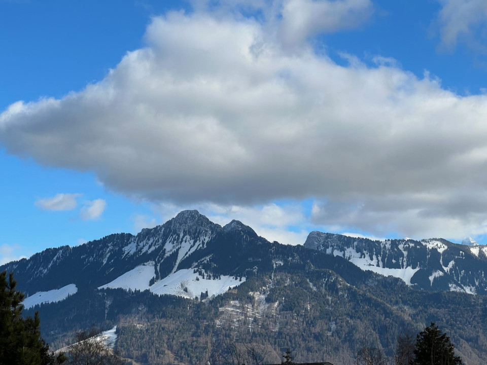 1 living très lumineux avec sortie sur un grand balcon, pas de vis-à-vis, vue imprenable sur le moléson