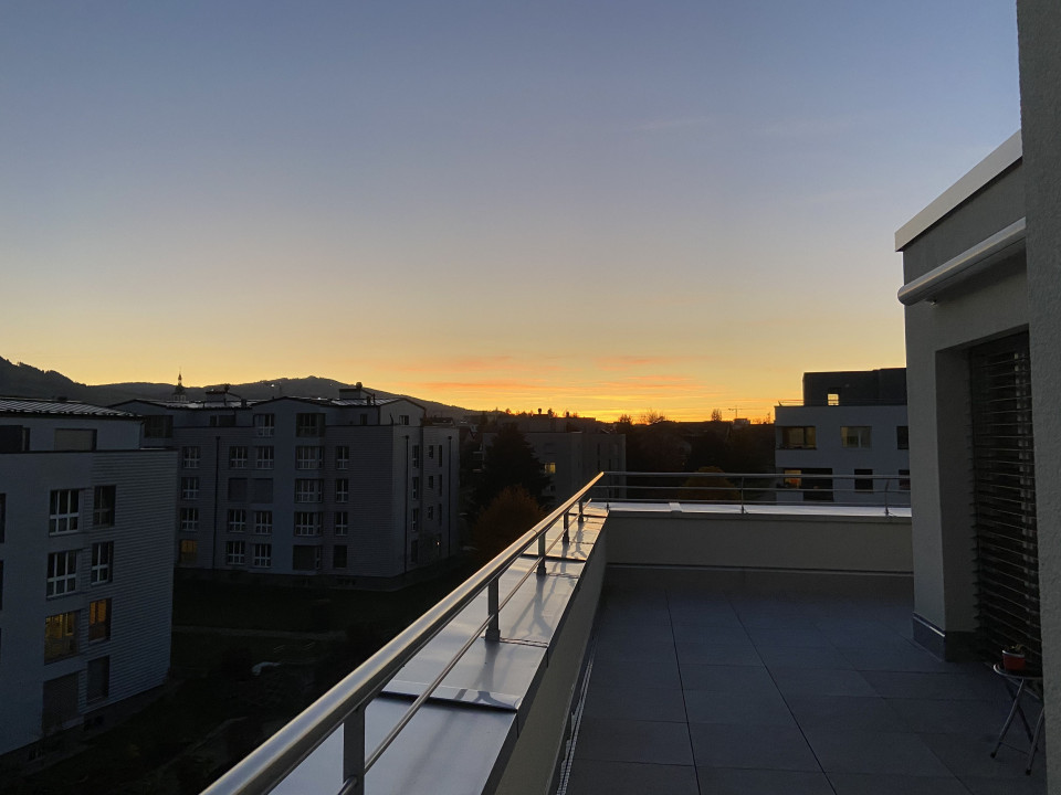 S'agissant d'un attique, le balcon fait le tour de l'appartement et il est très lumineux avec vue sur les montagnes.