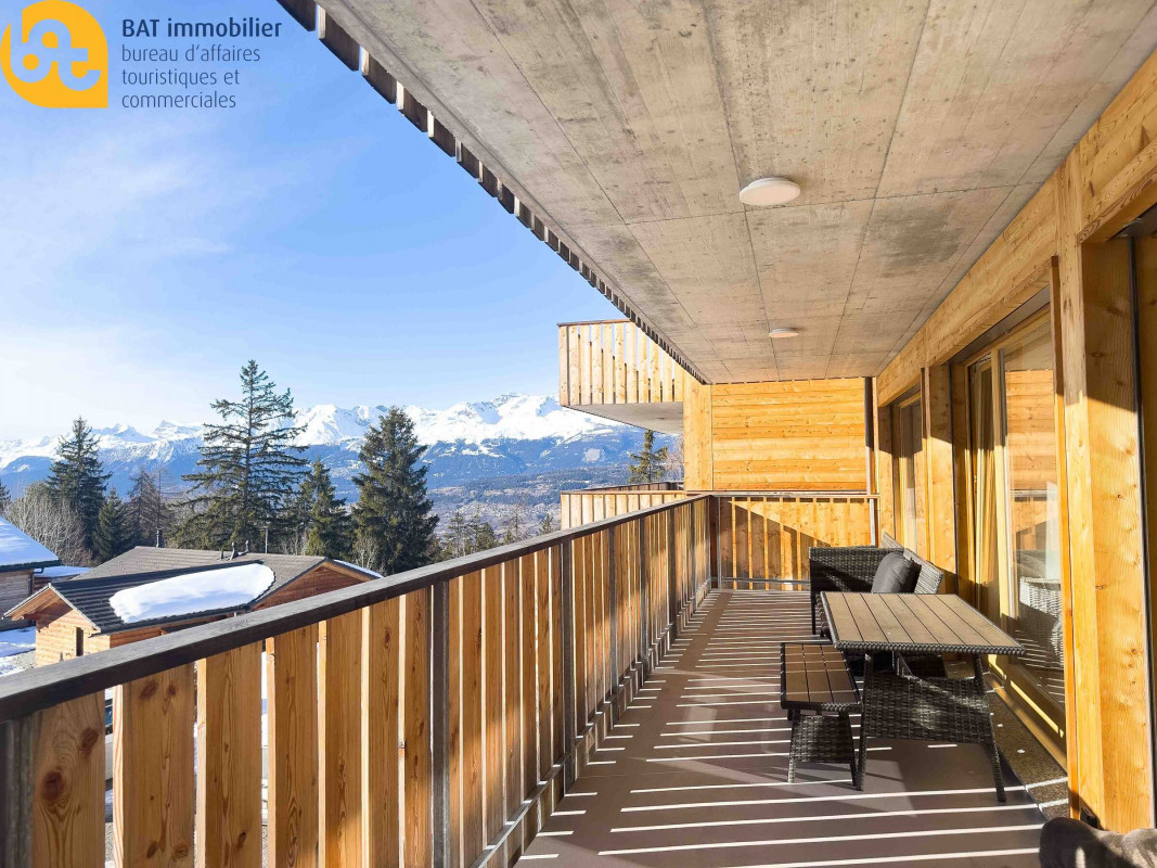 Appartement traversant de 3.5 pièces neuf, situé au sommet du "Mont", ensoleillement maximal (ouest, sud, est), grande tranquillité avec vue imprenable sur les Alpes Bernoises et vers la vallée du Rhône (Haut VS).