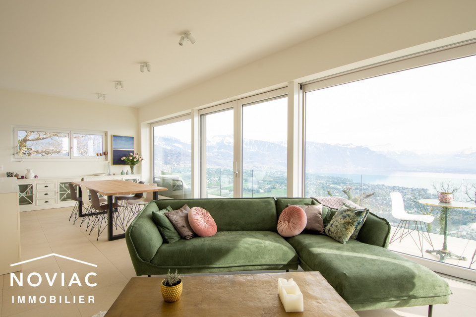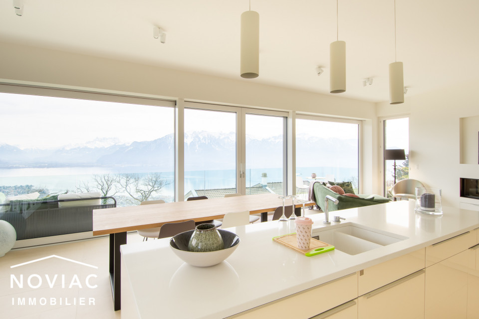 Sublime appartement contemporain 5.5 pièces, de 170 m², situé à Chardonne, à deux pas de toutes commodités (Commerces, transports publiques, pharmacie, ...). Les futurs locataires bénéficieront d'une vue imprenable sur le lac et les Alpes.