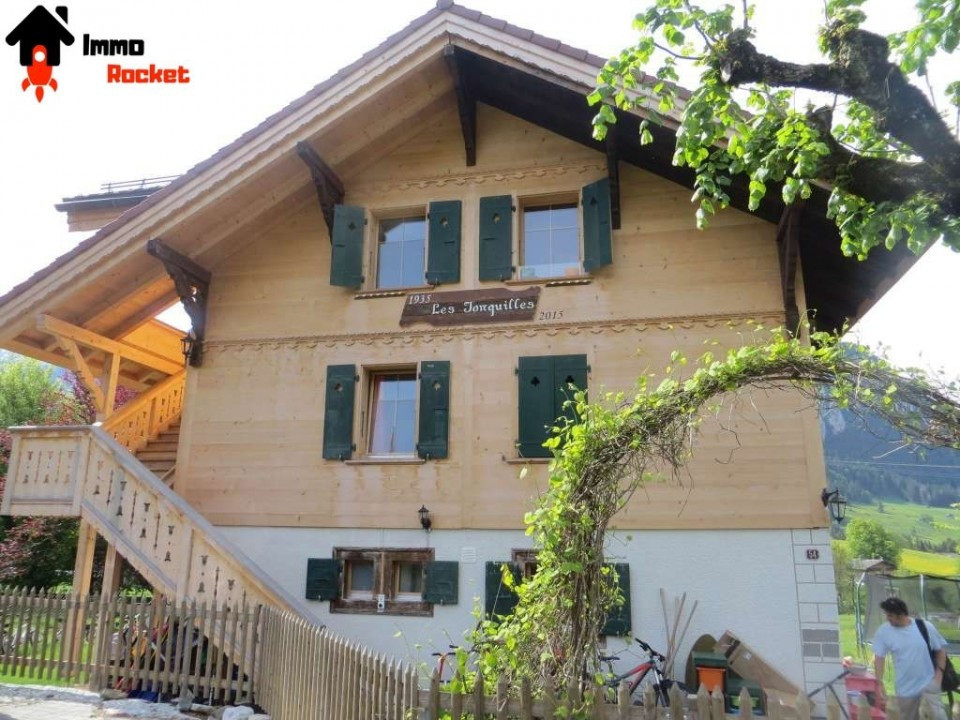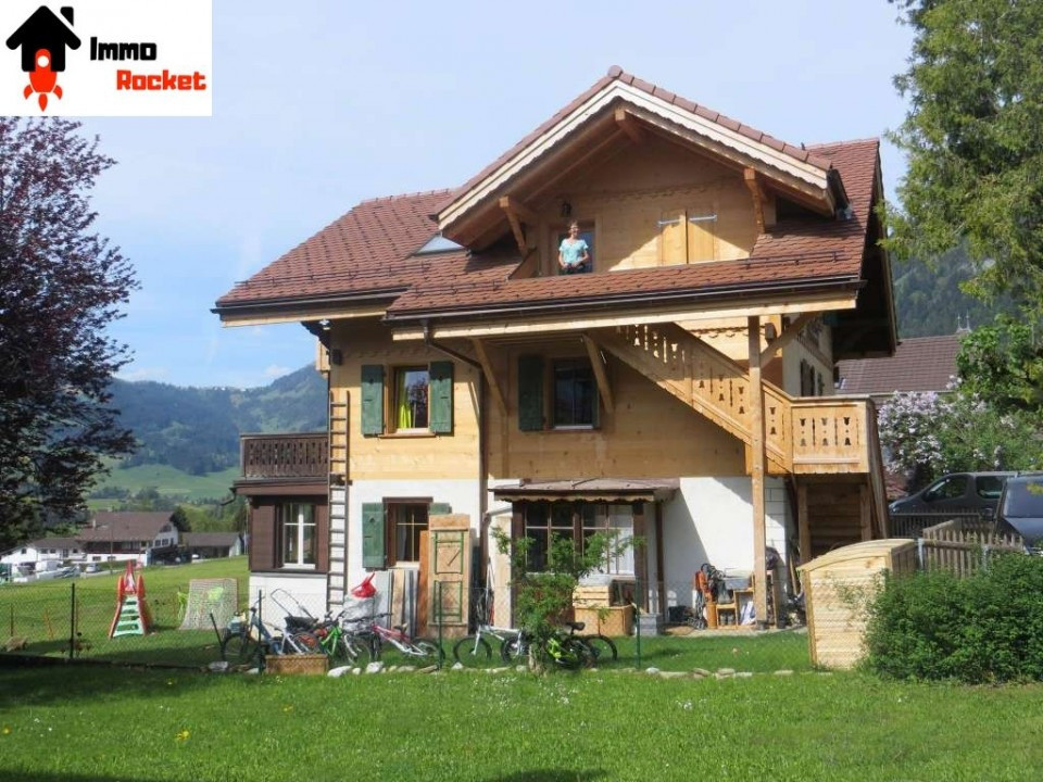 Ce bien unique est composé d'une cuisine agencée, un grand balcon avec vue imprenable sur le massif de la Gumfluh / Videmanette / Braye, un jardin avec potager, une lessiverie toute équipée dans l'annexe. Une véranda vitrée pouvant servir de bureau ou salle de fitness.