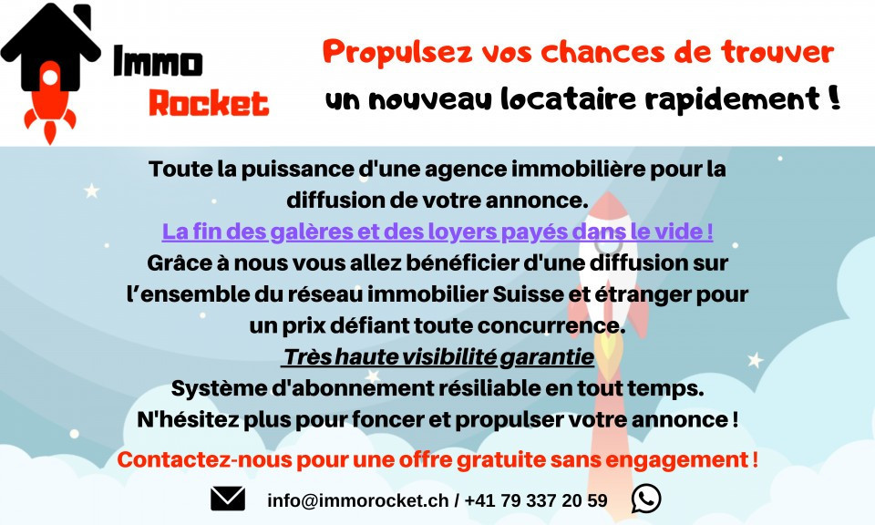 Grâce à nous vous allez bénéficier d'une diffusion sur l’ensemble du réseau immobilier Suisse et étranger pour un prix défiant toute concurrence.