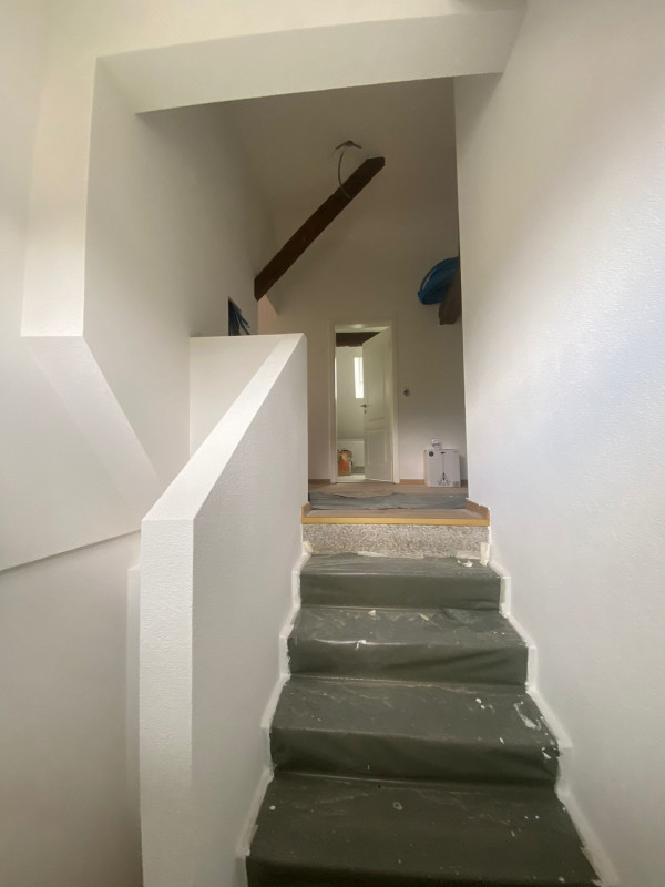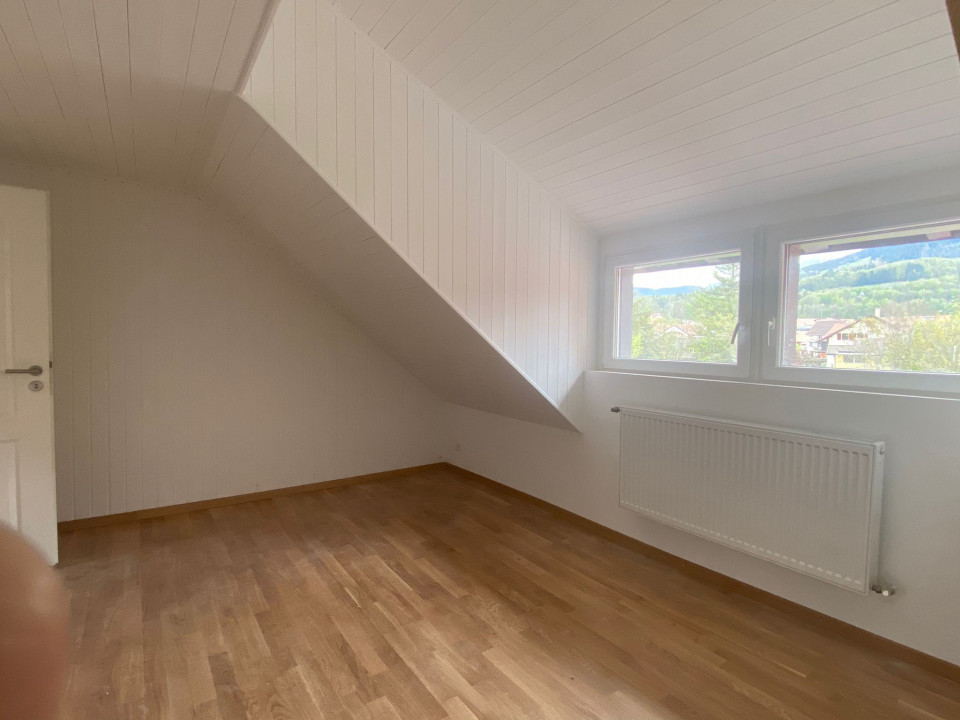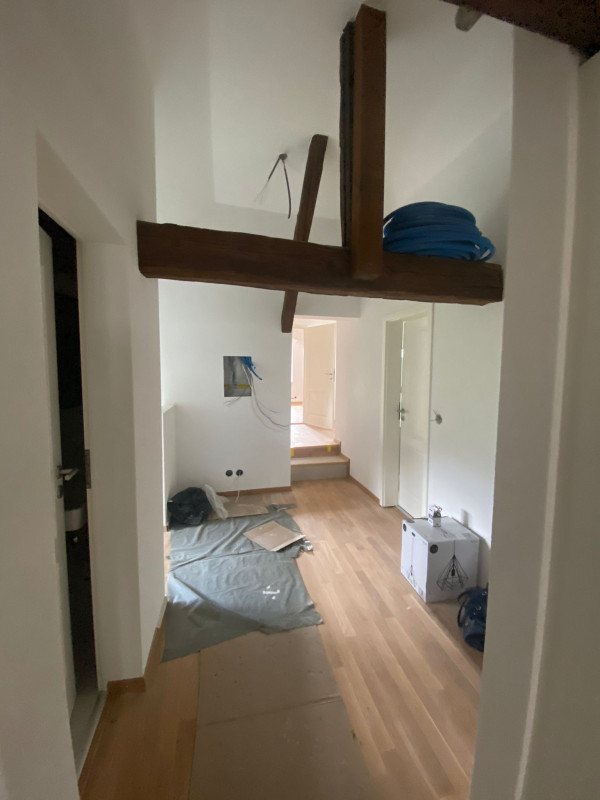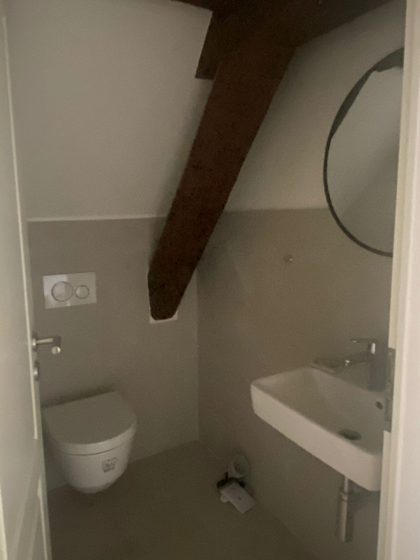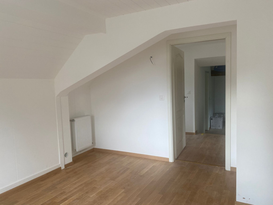 Magnifique appartement en attique mais avec de belles hauteurs, refait a neuf poutres apparentes , 1 WC séparé, 1 salle de bain, 1 très grande pièces et 2 chambres à coucher, un bureau ouvert, calme petit immeuble de 2 appartements, cave et buanderie gratuite, proche centre