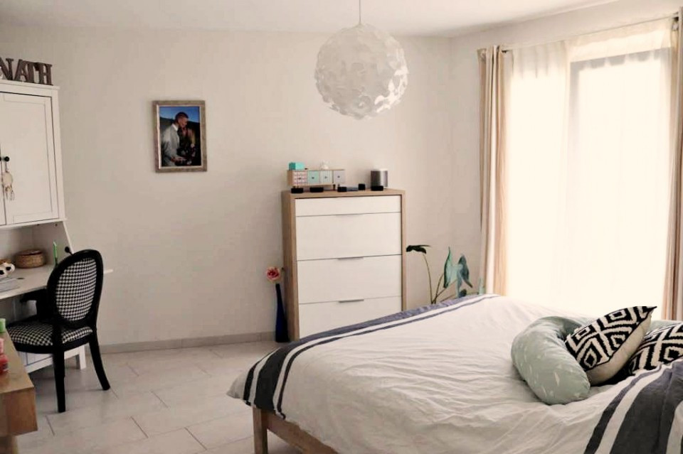 Il est composé d'une entrée, d'une belle pièce de séjour / salle à manger avec un accès à la terrasse, d'une cuisine ouverte entièrement équipée, de 3 chambres, d’une salle de bain / wc, d'un wc avec douche et branchements pour buanderie privative.