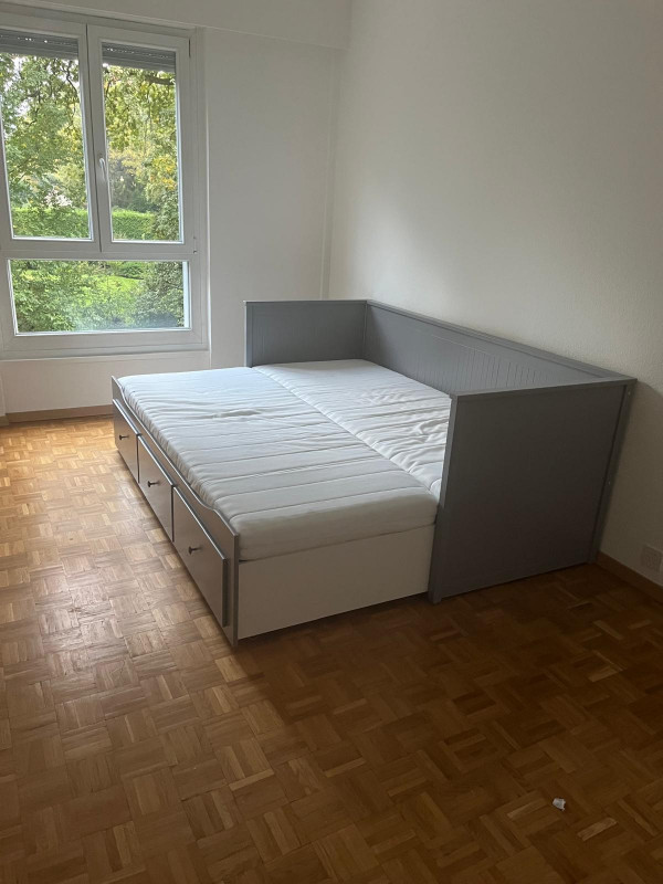 DESCRIPTION Ce confortable appartement de 3,5 pièces meublé est à 3 minutes à pied de tous les commerces et transports (proche du tram et de la gare du Léman-Express de Chêne-Bourg) dans un quartier très calme de la rive gauche. Location pour une durée d'un an renouvelable à partir du 15 février 2026. DISTRIBUTION : 9e étage avec ascenseur et code digital : - hall d'entrée...