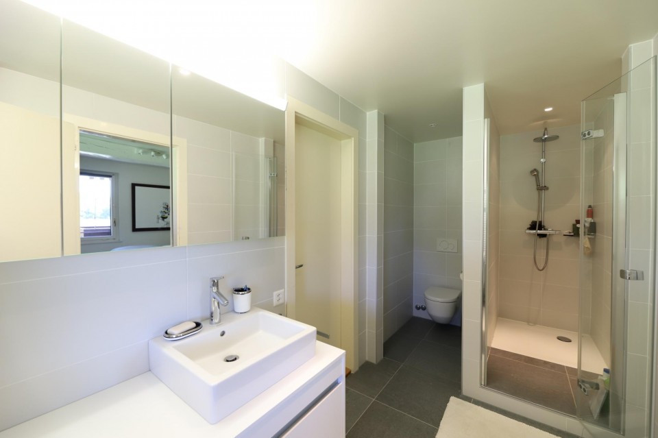 Beau duplex situé en pleine campagne genevoise dans un environnement verdoyant composé comme suit :