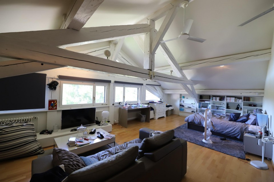 Une belle pièce sous les combles qui peut faire office de chambre avec salle de bain privative.
