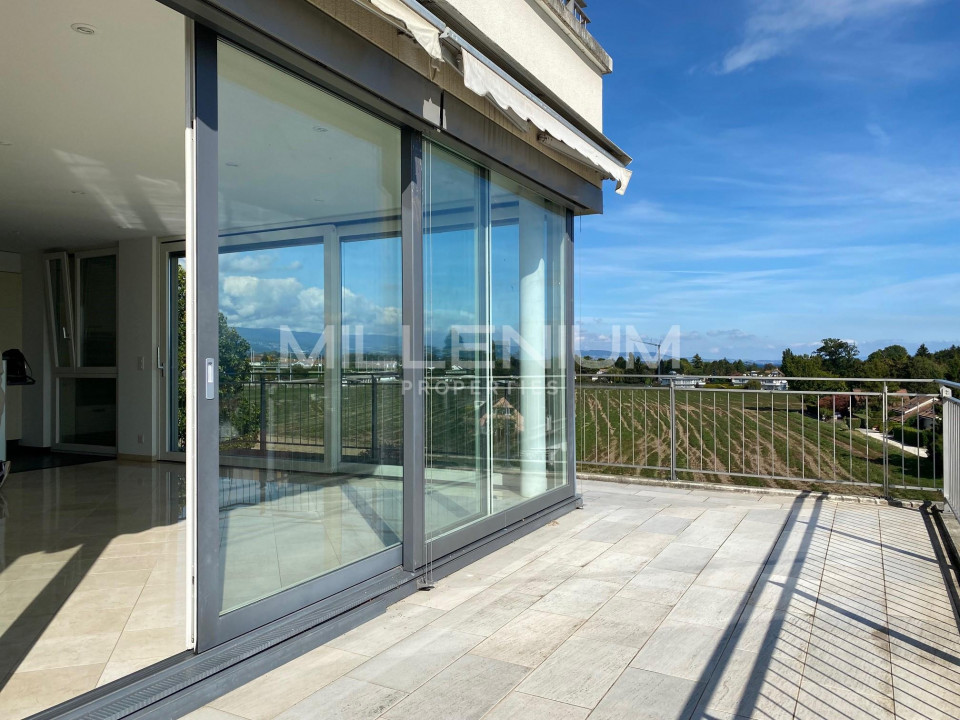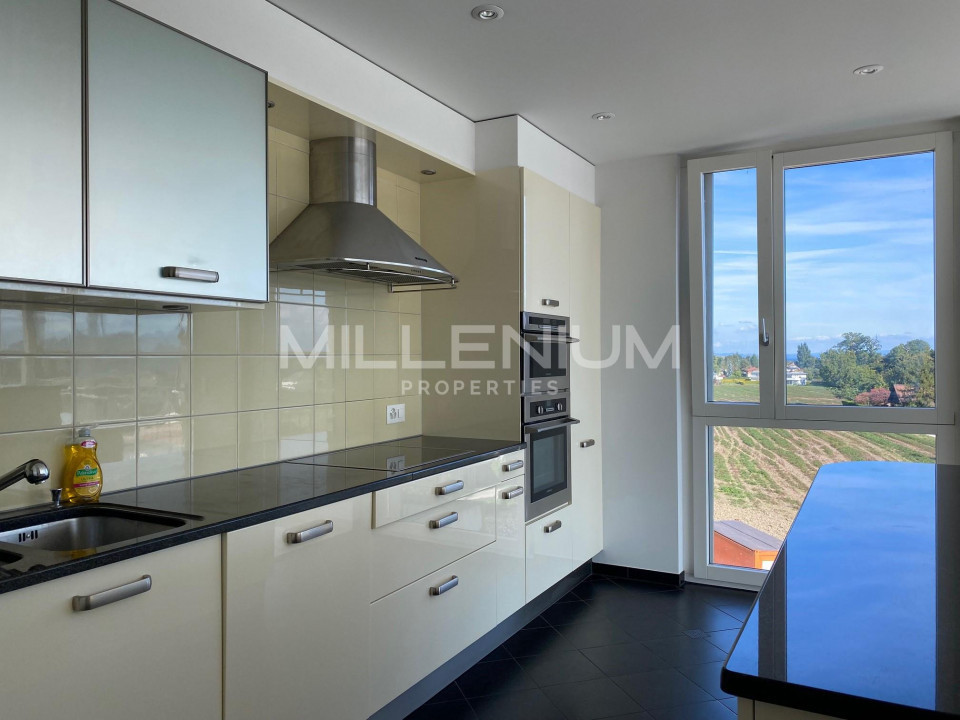En plein coeur de Coppet dans un environnement résidentiel au calme, bel appartement avec vue panoramique sur le lac, le Jura et les Alpes composé comme suit :