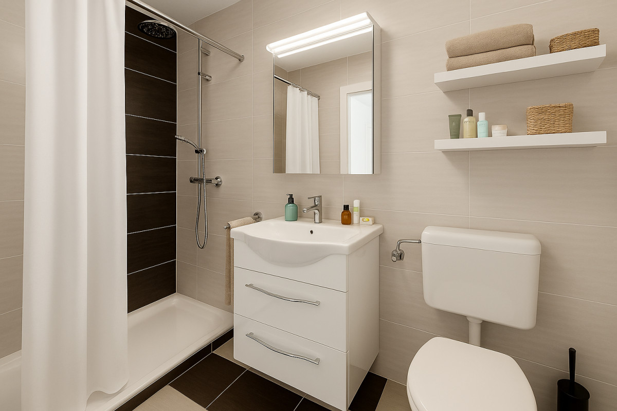 Le parquet apporte une touche élégante, complété par deux salles d’eau modernes.