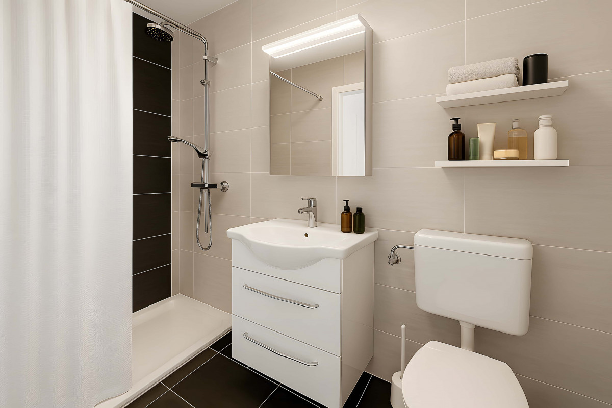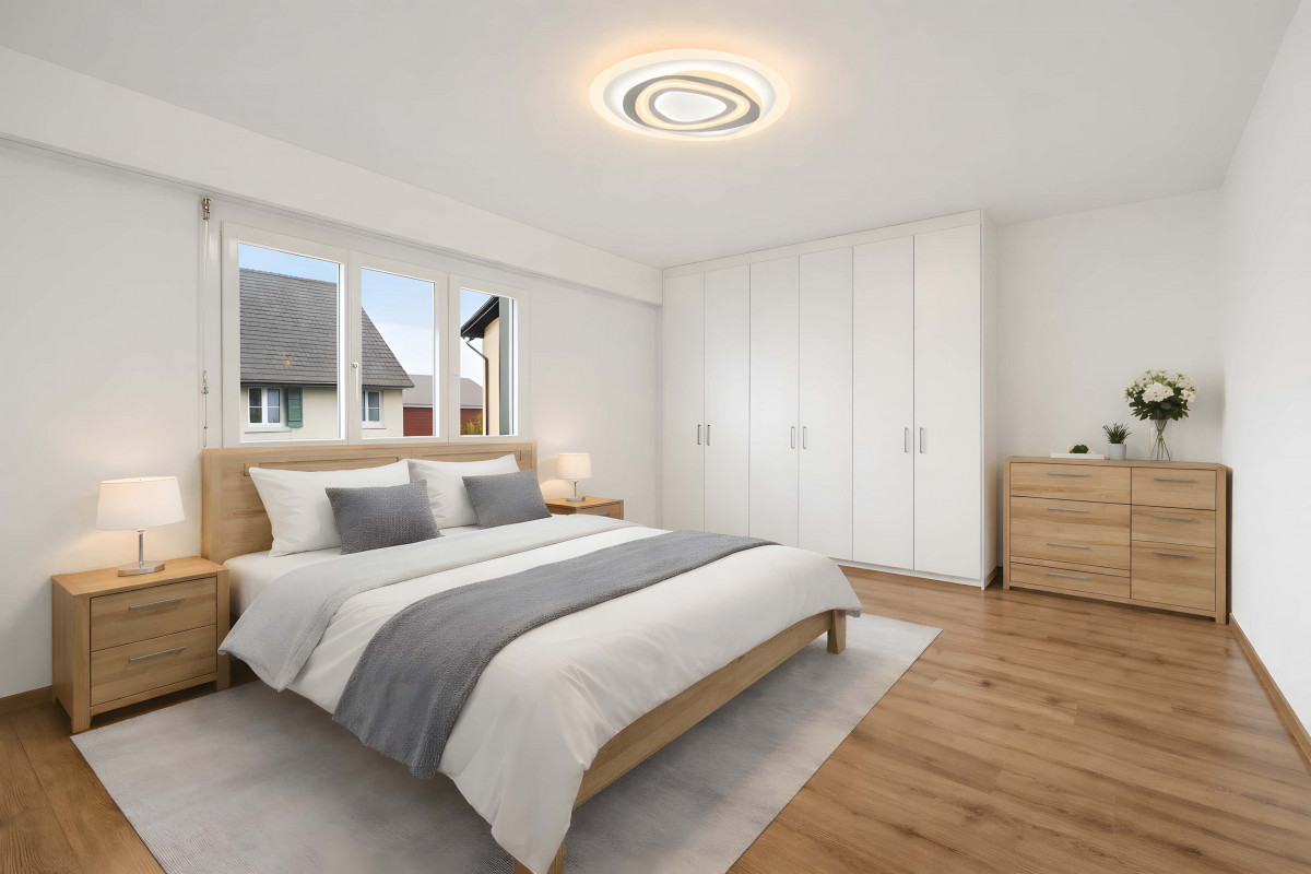 Le parquet ajoute une belle harmonie, tandis que deux salles d’eau séparées offrent tout le confort nécessaire.
