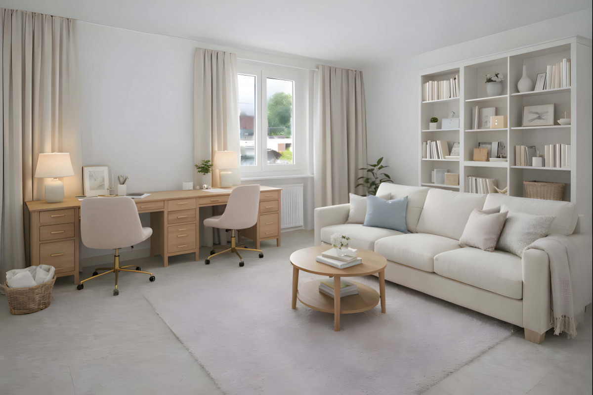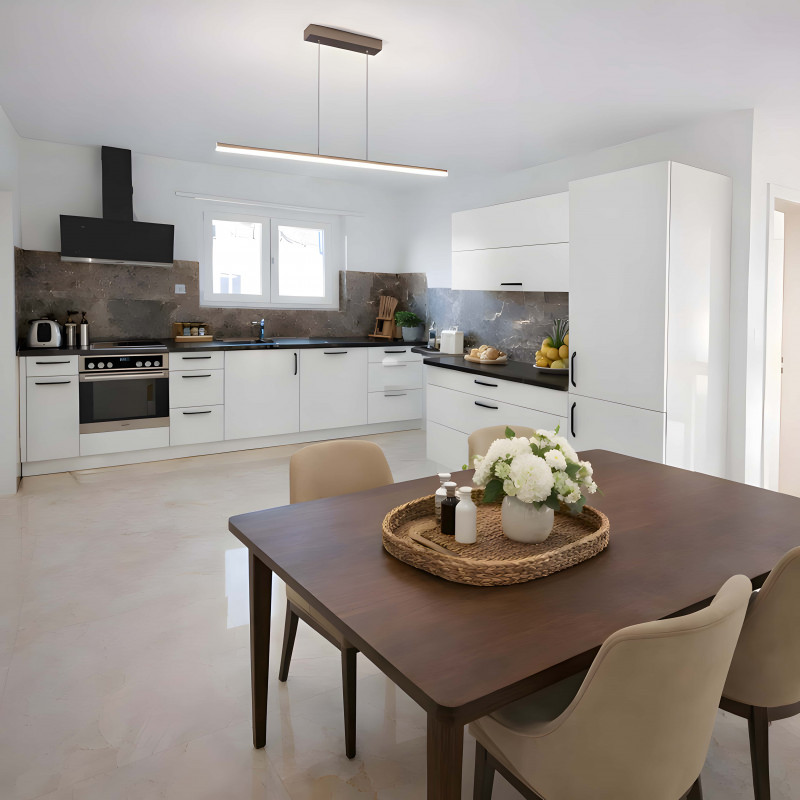 un séjour lumineux et une cuisine habitable moderne.