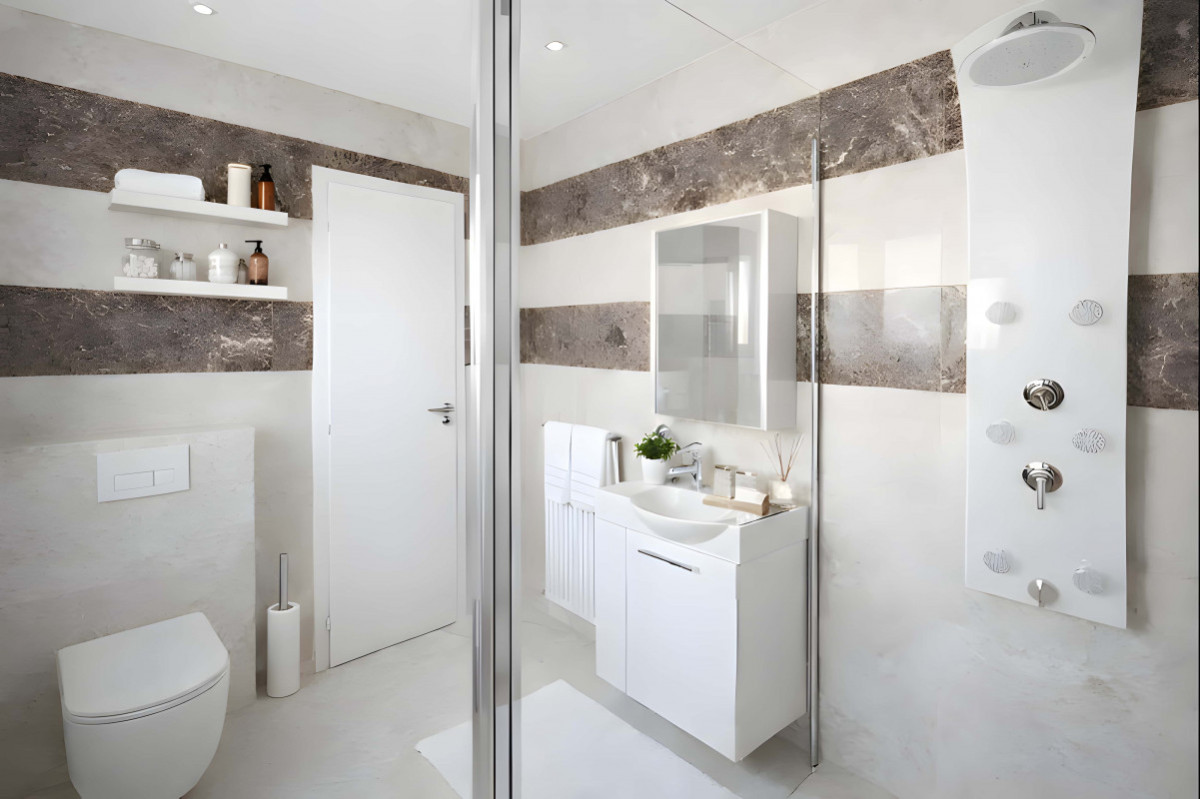 L’élégance du marbre confère au logement un caractère raffiné et intemporel.