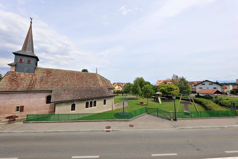 Proche de toutes commodités : en plein centre du village (épicerie, restaurants, écoles, transports publics...), 5 min en voiture de Divonne-les-Bains, 15 min de l’aéroport et 20 min de Genève.