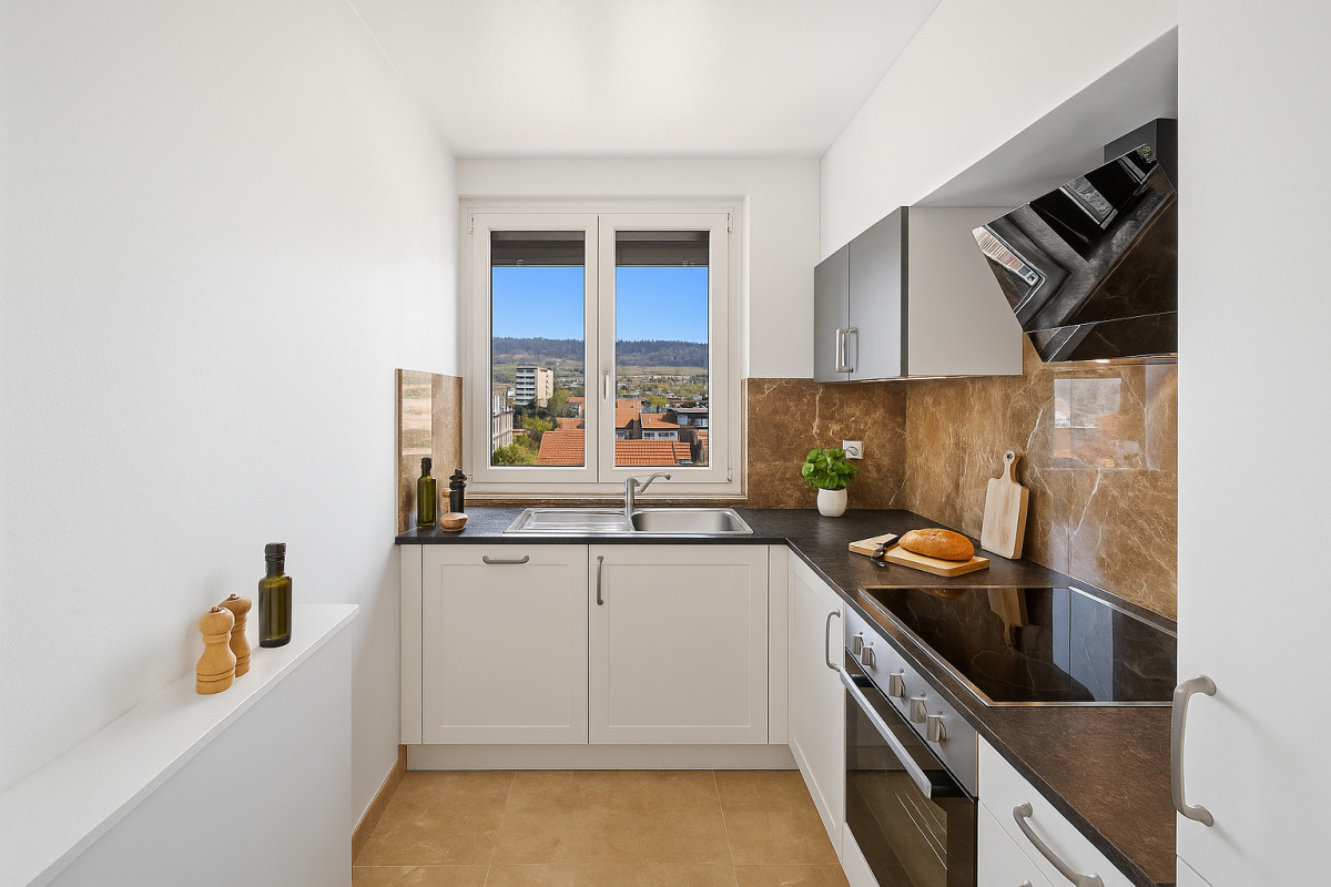 Ce 3,5 pièces séduit par ses finitions soignées et sa lumière naturelle. Cuisine et salle de bain haut standing, immeuble de prestige. Un bien rare à proximité immédiate du centre. Loyer : CHF 1’200 + CHF 190 charges. * 1 mois de loyer offerts pour une location d’une durée minimale de 2 ans.