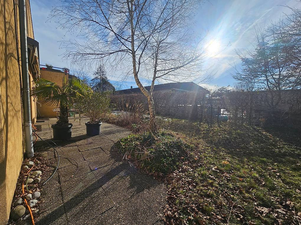 A louer, superbe appartement de 4.5 pièces d'une surface habitable d'environ 126 m2 au rez-de-chaussée d'une villa individuelle. L'emplacement de cette construction est privilégiée de par son intimité car elle se situe à la fin d'un chemin privé aux abords d'un champ et à la lisière de la forêt. Le logement se compose comme suit : hall d'entrée avec armoires encastrées, une cuisine agencée, espace salle à manger ouvert sur le séjour, une salle de douche, 3 chambres équipées d'armoires encastrées, une grande salle de bains. L'appartement dispose bel espace terrasse côté Sud et côté Ouest avec un jardin privatif ainsi que d'une grande cave. Une buanderie commune aux deux appartement est mise à disposition au sous-sol. L'appartement est remis avec un garage individuel à CHF 180.- et une place de parc extérieure à CHF 50.-. Le bâtiment est équipé d'une pompe à chaleur géothermique.