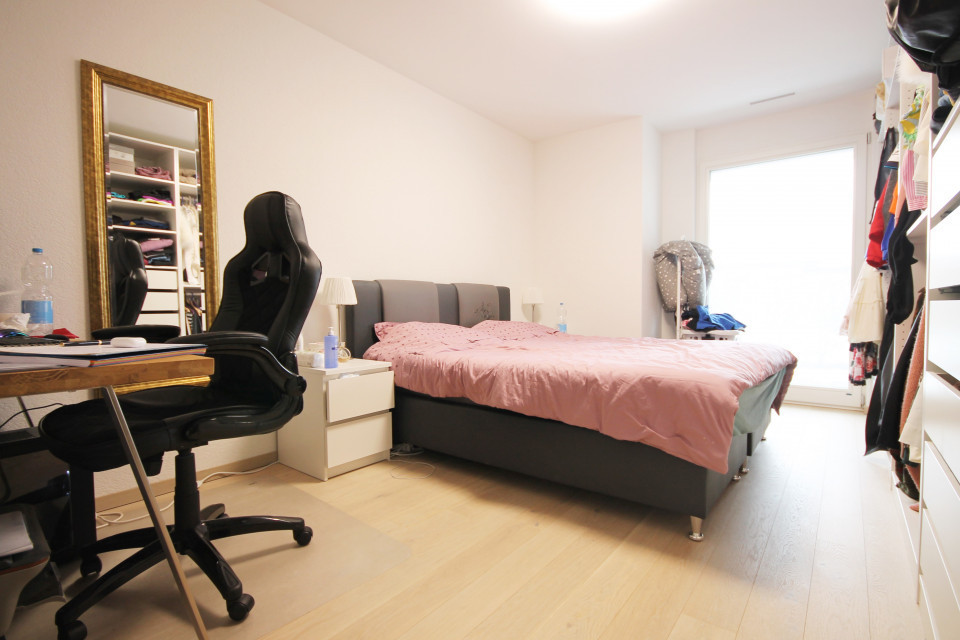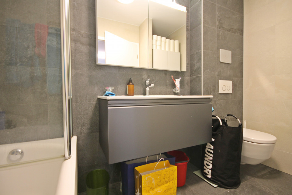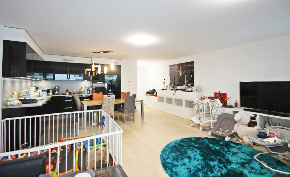 Il est composé d'une entrée, d'une belle pièce de vie lumineuse, d'une cuisine entièrement équipée ouverte sur le séjour, 2 chambres, une salle de bain avec wc et une salle de douche avec wc. Une grande terrasse de 26m² avec un petit jardin de 52m². Jardin commun complète également ce bien. Appartement récent de 2016, aux normes minergie.