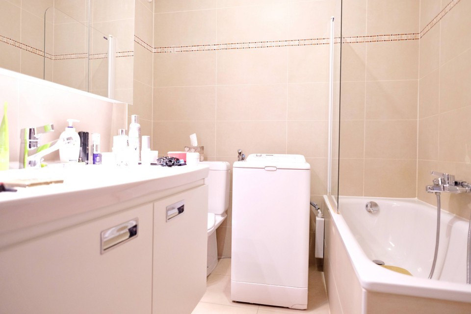 Buanderie privée avec machine.
