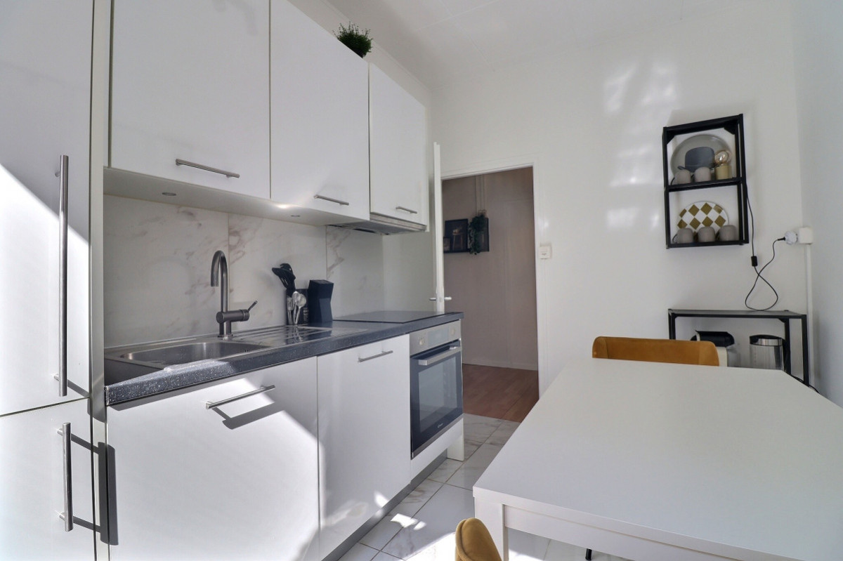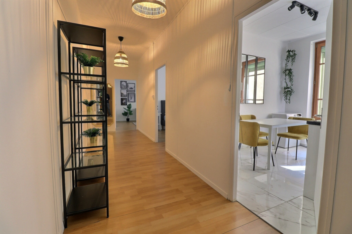L'appartement a été entièrement rénové et décoré avec goût dans un style contemporain. Parquet clair, luminaires design et touches végétales créent une atmosphère chaleureuse et soignée.