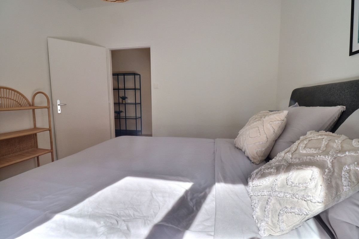 Situé au 1er étage d'un immeuble calme, cet appartement meublé avec soin offre un cadre de vie agréable à l'écart des nuisances, avec des fenêtres donnant sur une cour intérieure.