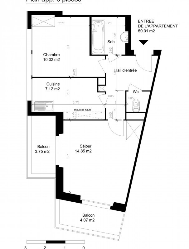 Cet appartement 3 pièces de 50m2 au 2ème étage d’un immeuble sécurisé avec ascenseur est composé comme suit :