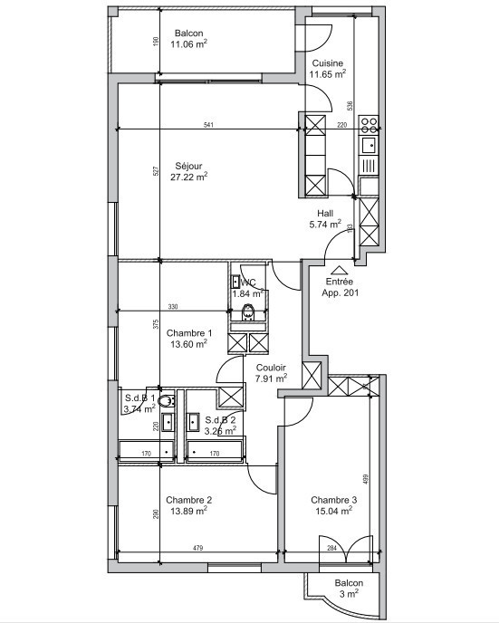 Cet appartement de 5 pièces de 120 m2 au 2 ème étage se compose comme suit :