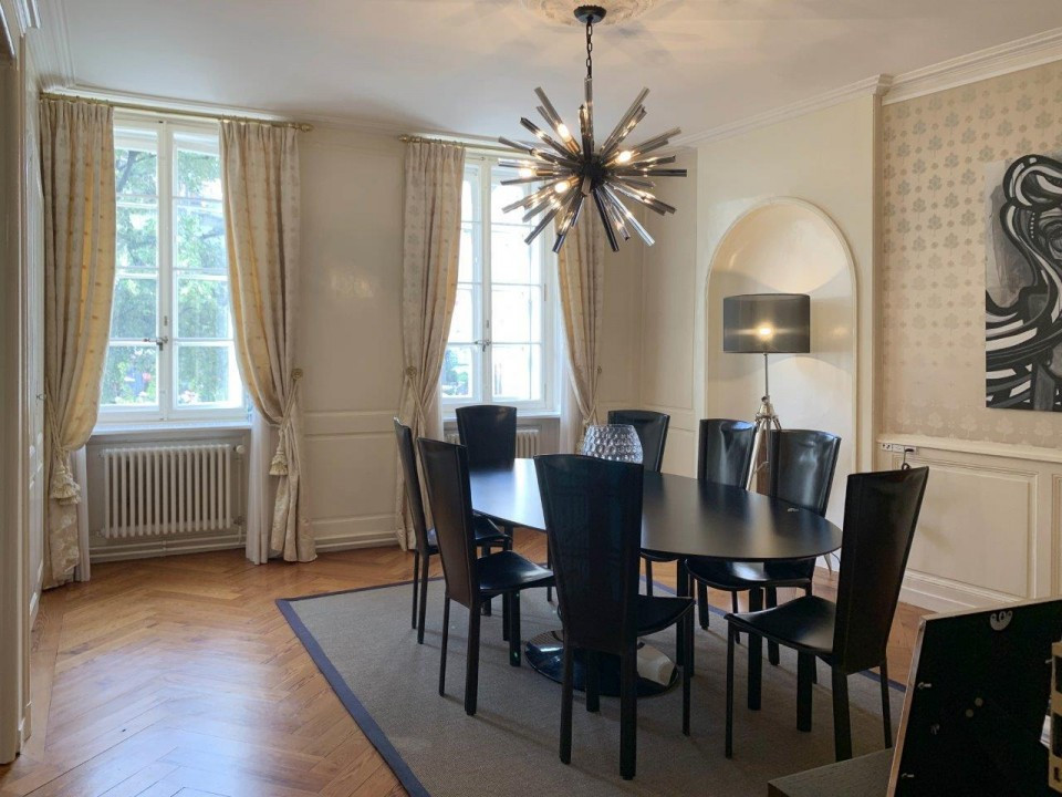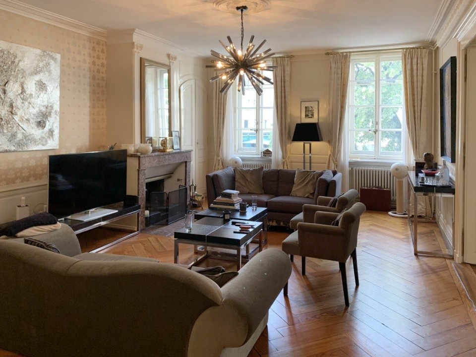 Situé dans un immeuble de charme à Bourg du four dans la vieille ville de Genève, appartement de standing spacieux et lumineux de 150 m2 aux prestations haut de gamme avec vue sur la cathédrale et le lac, parquet ancien et équipements haut de gamme.