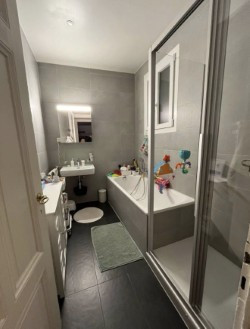 - Salle de bain avec baignoire et douche