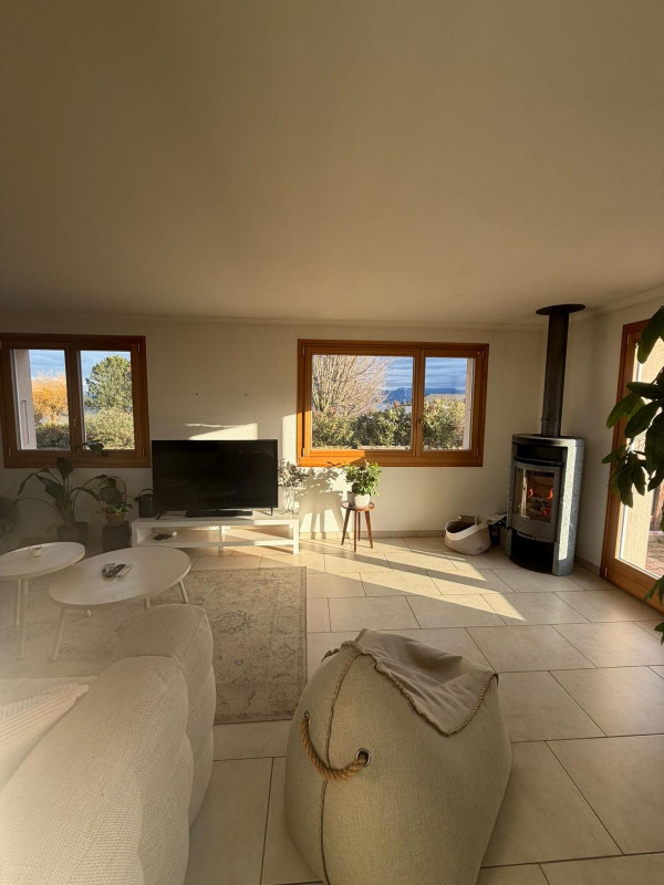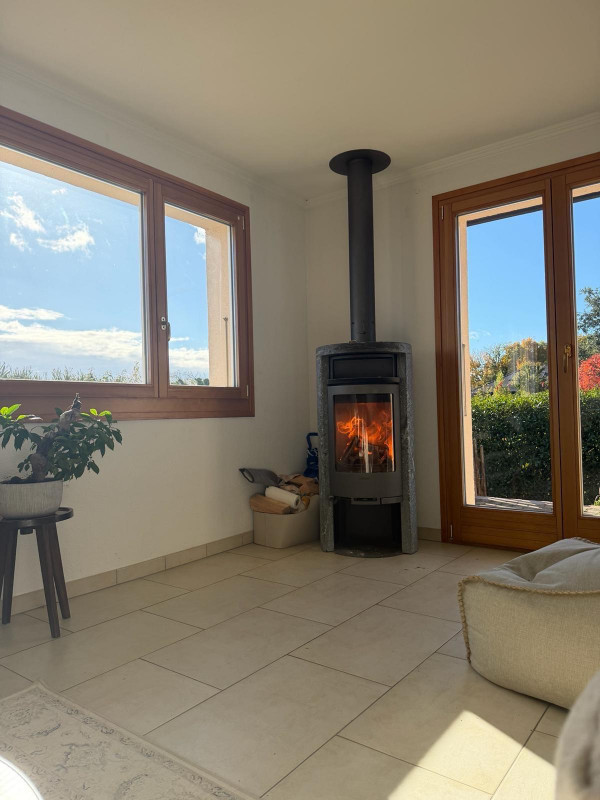 Vie : Séjour lumineux avec poêle, cuisine entièrement équipée, 2 salles de bains + WC visiteurs.