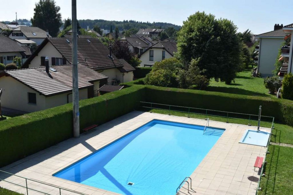 Une grande piscine est accessible de mai à septembre pour tous les locataires de l'immeuble.