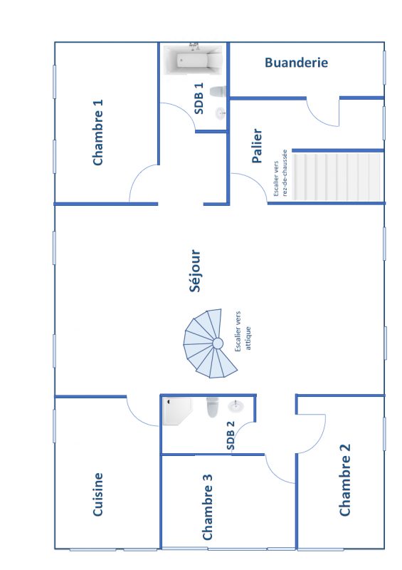 L'appartement dispose d'un beau séjour avec poêle ainsi que d'une élégante mezzanine pouvant servir de pièces annexes ou de bureaux. De plus, il bénéficie d'un seul appartement par étage ainsi que d'une buanderie privée.