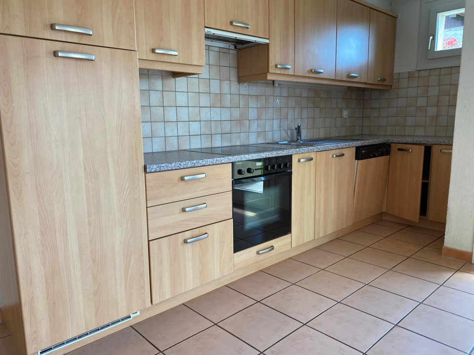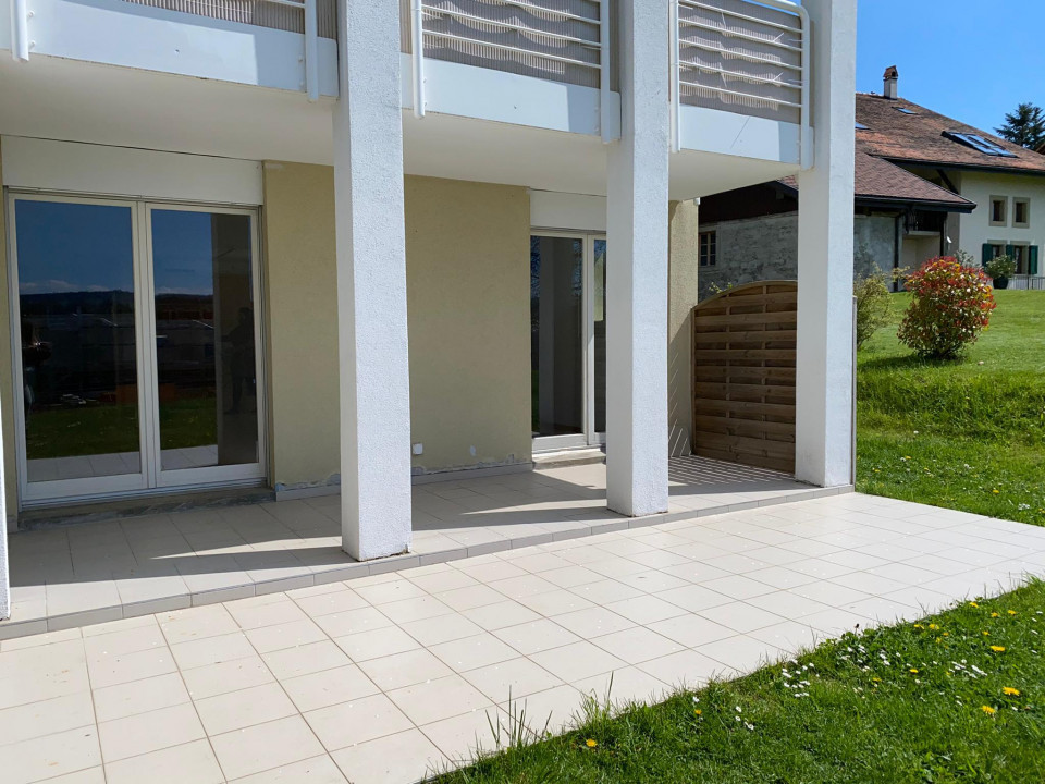 Bel appartement de 3 pièces avec terrasse et partie engazonnée composé comme suit :