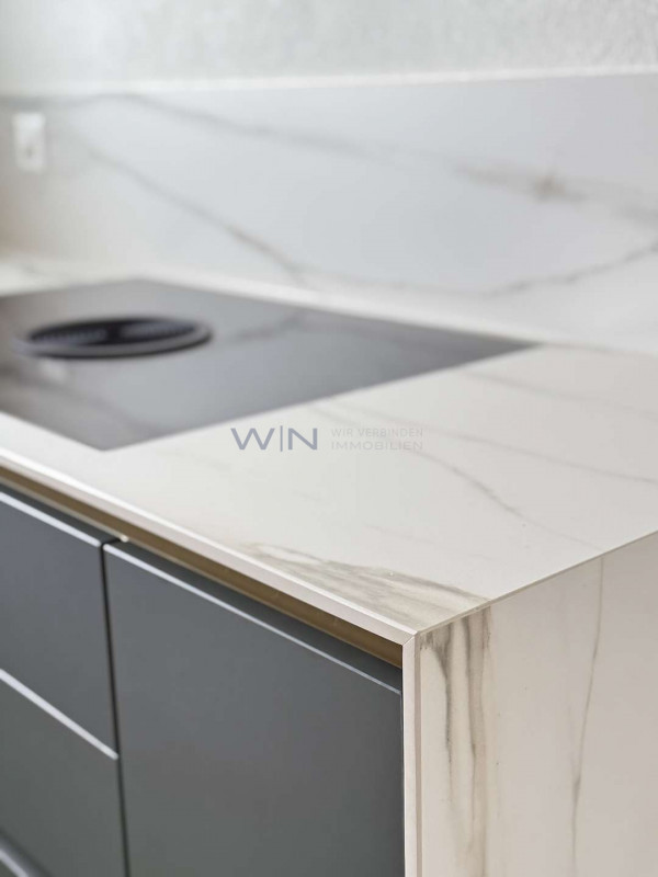 Die hochwertige Ausstattung zeigt sich bereits beim Betreten der Wohnung: Grossformatige Fliesen im Format 60x120 cm verleihen den Räumen eine elegante, moderne Note und sorgen für ein harmonisches Gesamtbild. Das Herzstück der Wohnung ist die Designer-Einbauküche, ausgestattet mit Induktionskochfeld, Backofen, Mikrowelle, Steamer sowie einem Quooker-Armatur, der sofort kochendes Wasser auf Knopfdruck liefert - ein echter Komfortgewinn im Alltag.