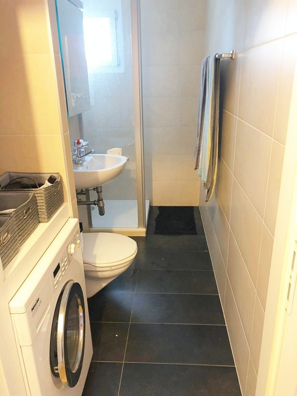 Entrée, cuisine ouverte, salle de douche avec WC, lavabo et machine à laver. Une cave complète ce bien.