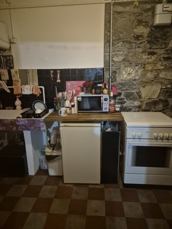 Le logement se compose dune grande pièce à vivre, une cuisine aménagée séparée. Les toilettes se situe juste en face dans le couloir et la salle de bain au deuxième étage.