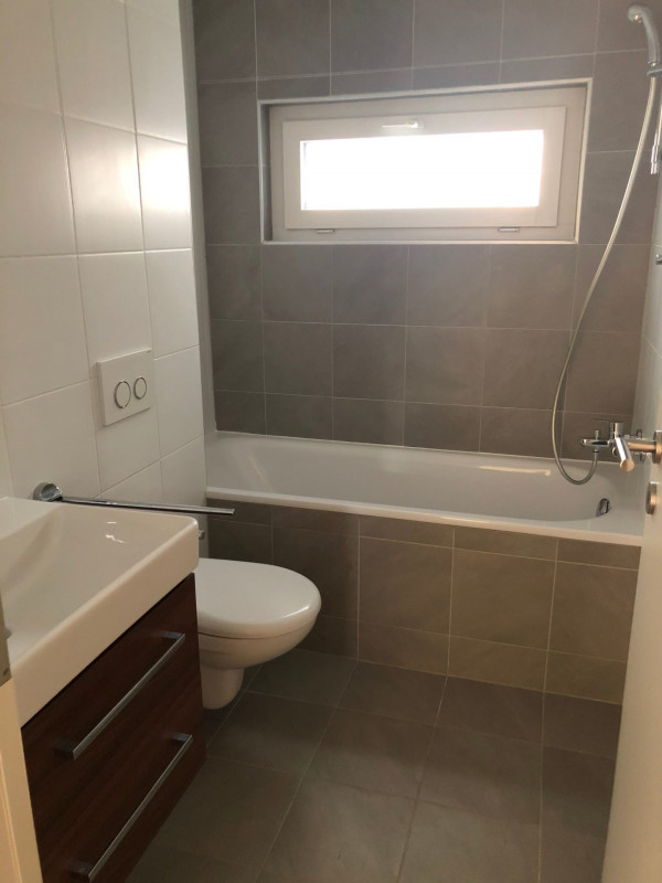 MAGNIFIQUE 2,5 PCES de très bon standing, construction 2016, au rez avec une GRANDE TERRASSE dallée en construction, exposée Sud-Ouest, à l’abri des regards.